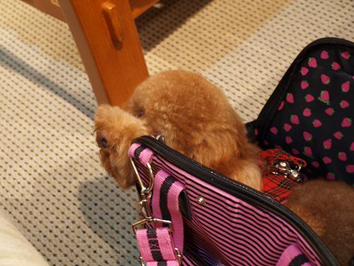 累了就趴在袋子裡乖乖休息
