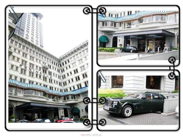 酒店外觀很壯觀,勞斯萊斯的車穿梭其間,第一次看見千萬名車的我,像個鄉巴佬一樣拍照,不識貨的我,其實看不出為何要這麼貴