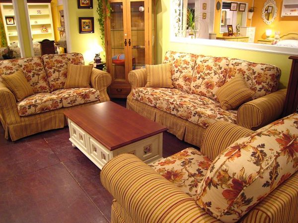 過年前剛好英麗推出一系列花布跟條紋搭配的沙發布
